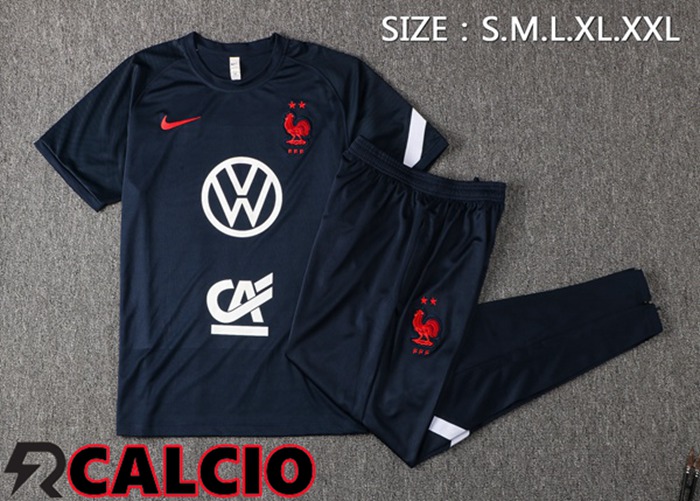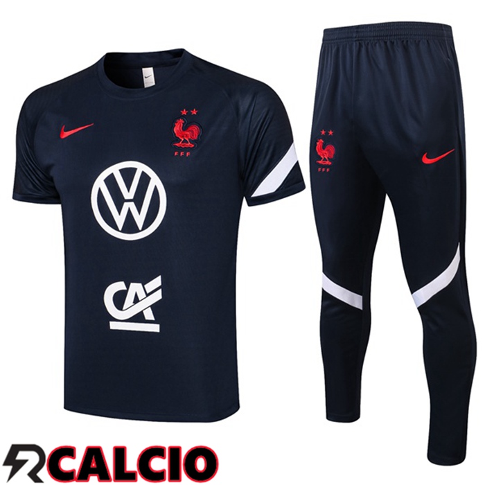 T Shirt Allenamento Francia + Pantaloni Blu Royal 2021/2022